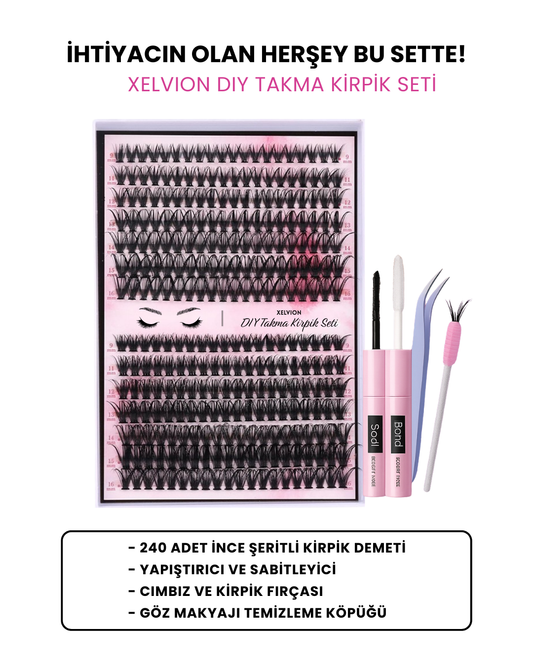 Xelvion 240'lı Takma Kirpik Seti - Sabitleyici, Cımbız ve Kirpik Fırçası